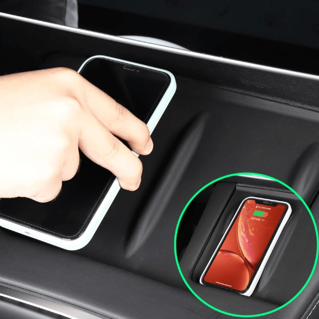 Install this wireless charging pad installed in the center console of your Tesla Model 3 2017-2023 if you want to make the most of your phone while driving. The Tesla anti-skid silicone pad is a great use case as it prevents your phone from slipping off the wireless charging area while driving