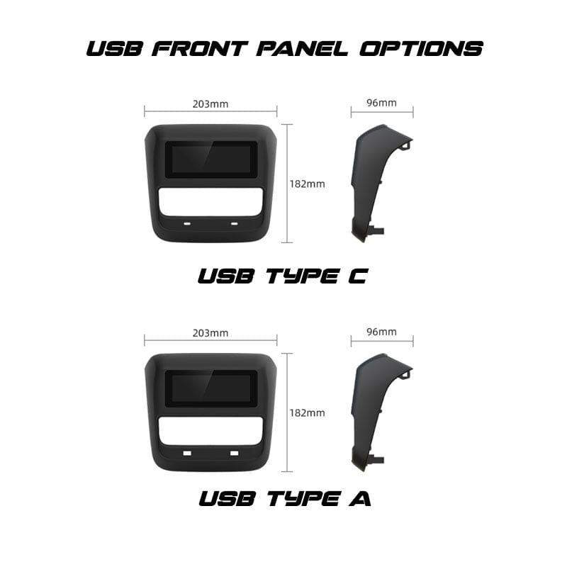 - Select from USB-C or USB-A plates for the rear AC vent.