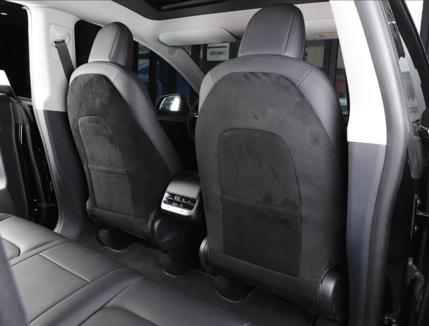 These seat back covers are great! They do a fantastic job of covering up the cheap-feeling stock plastic seatbacks in my '23 Model 3 LR. The material matches the 'vegan leather' of the vehicle's seat cushions (black interior).