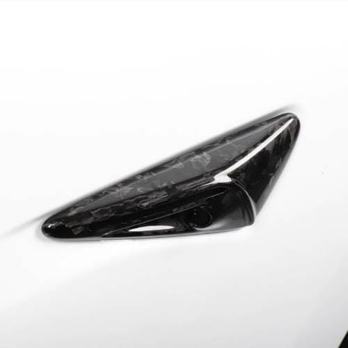 Genuine carbon fiber - Real gloss forged carbon fiber trims that are precision-engineered to fit Model 3 turn signal side cameras.