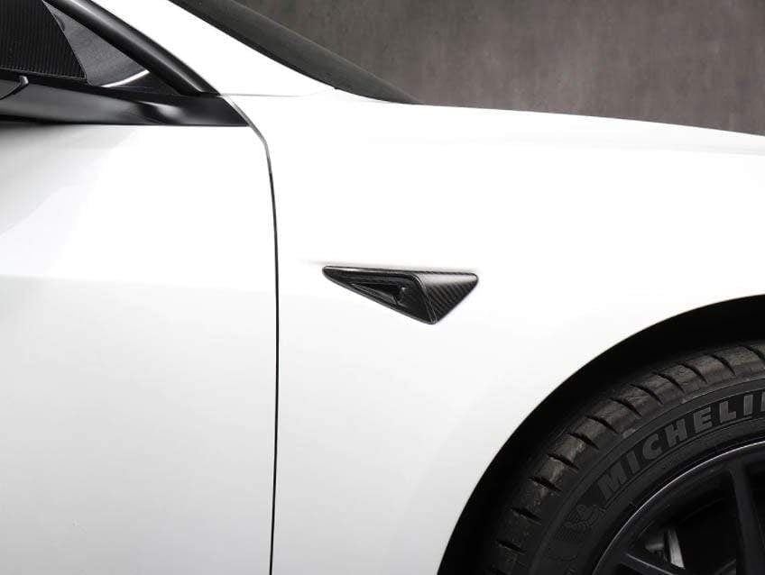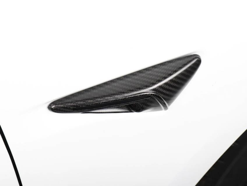 Real Molded Carbon Fiber Side Marker Turn Signal Camera Overlay Covers New V2 for Tesla Model Y 2020-2024
